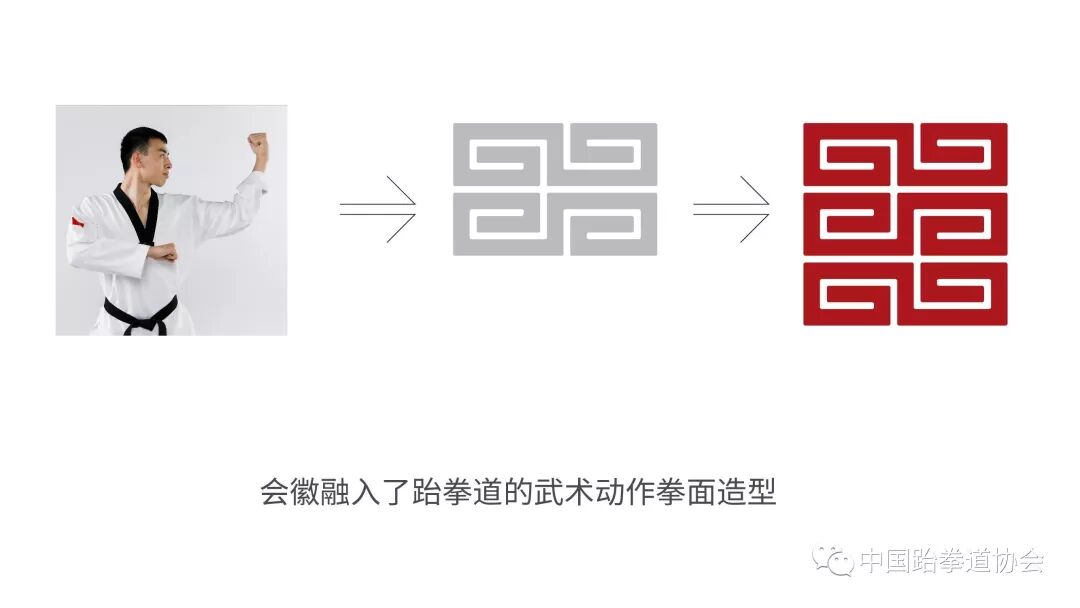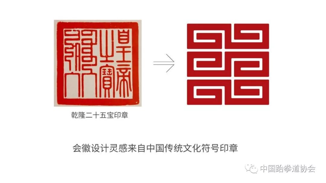 中国跆协新会徽设计灵感来自中国传统文化符号印章。印章在我国传统观念中有承诺、诚信的含义。